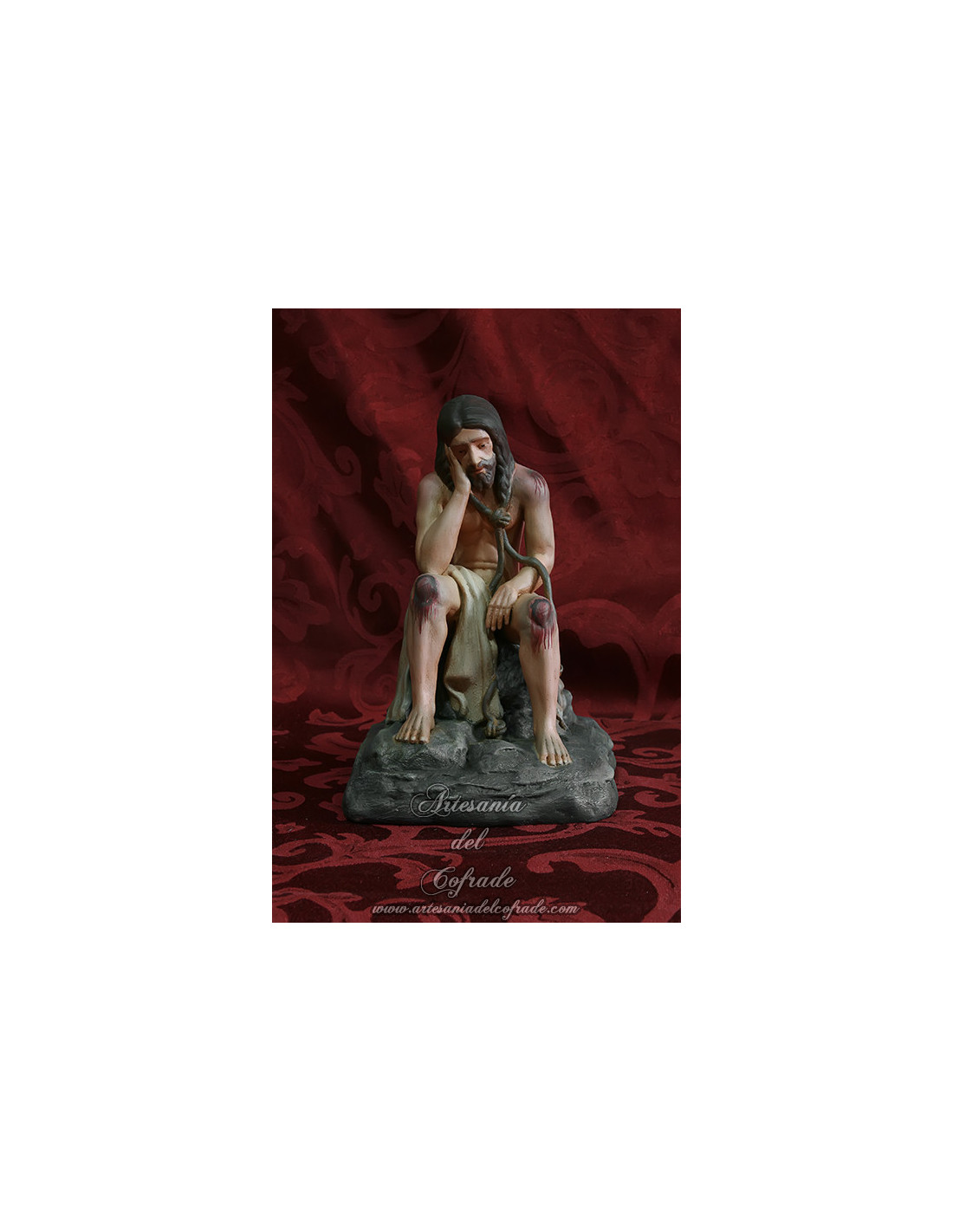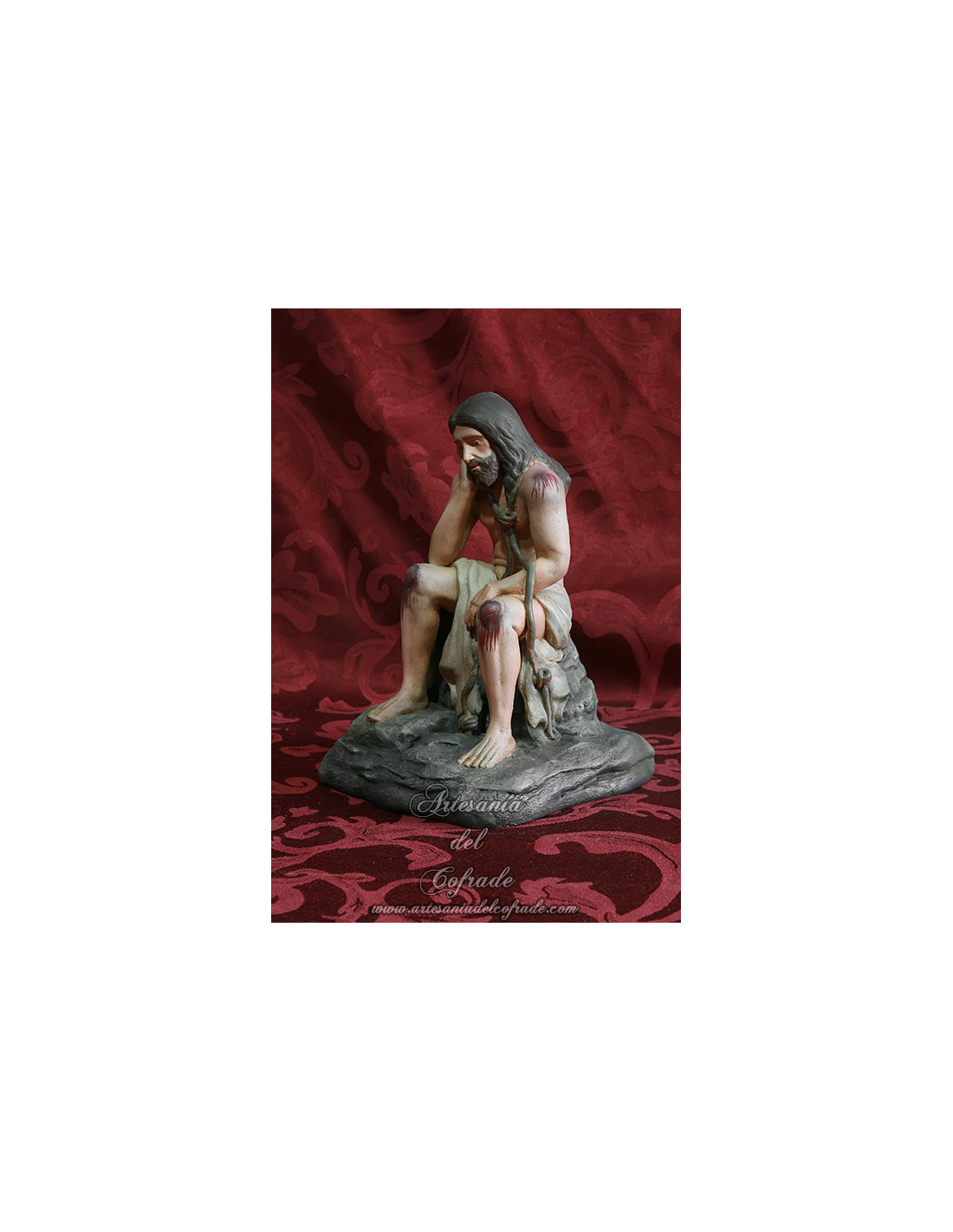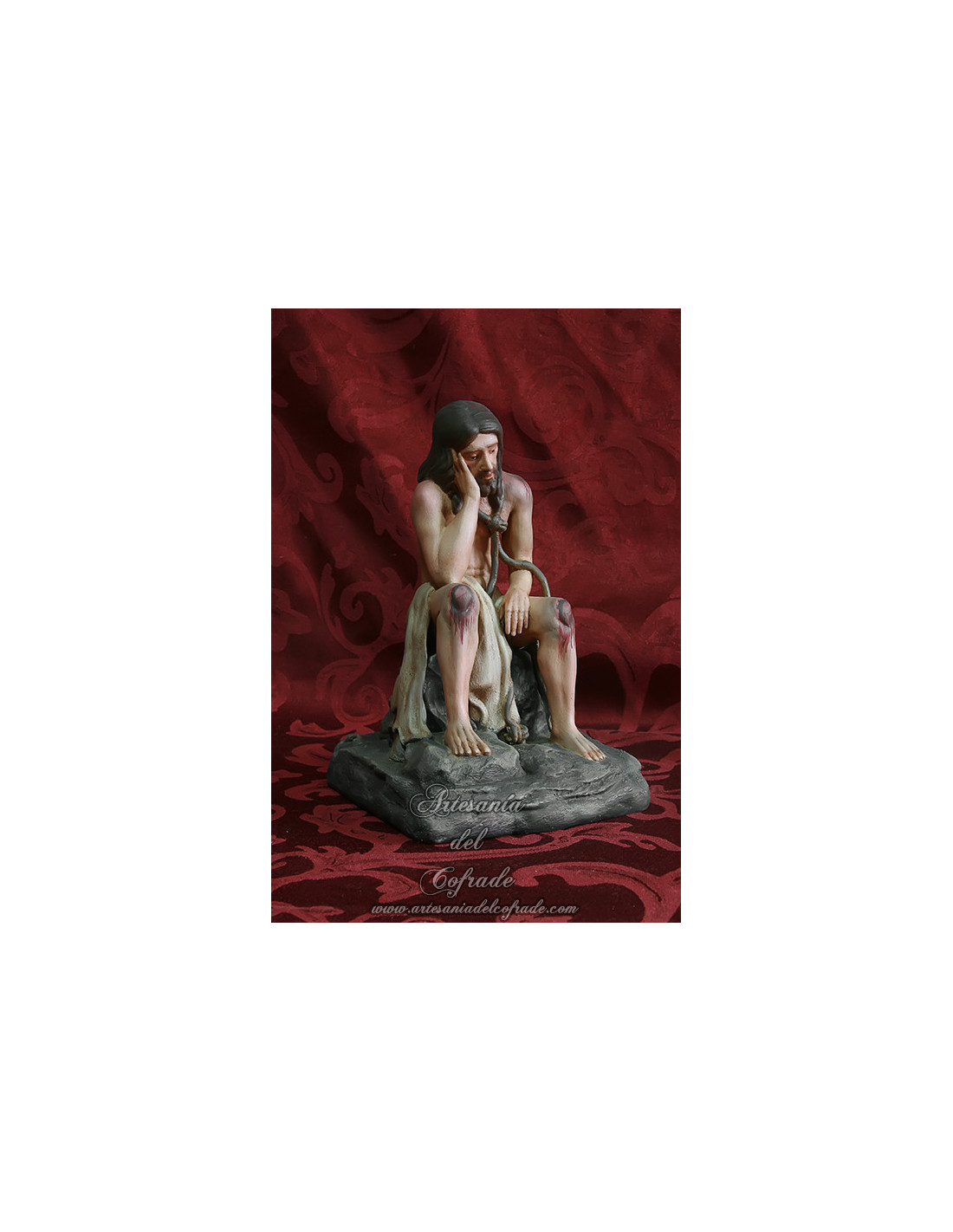 Cristo de Humildad y Paciencia en miniatura de 20 cm (21 cm incluyendo la peana) realizado en resina y policromada a mano con oleos.