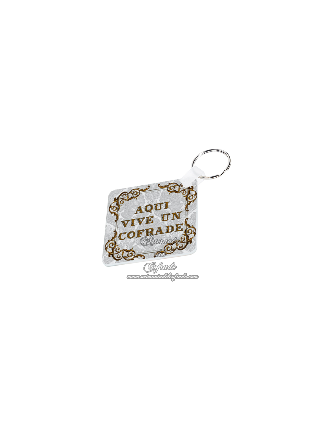Llavero cuadrado con el texto Aqui vive un cofrade