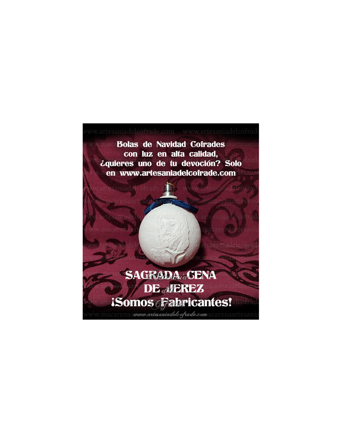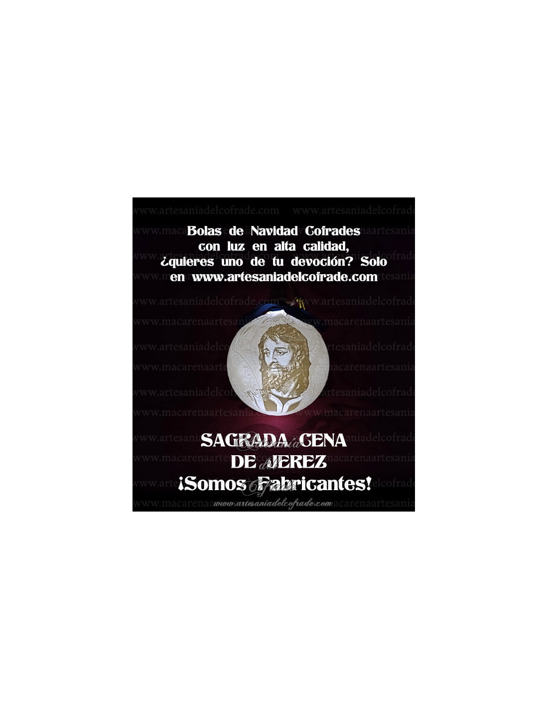 Es un regalo cofrade ideal para hermanos de la Sagrada Cena de Jerez. ¿Buscas otra imagen? Podemos realizar la bola de Litofanía con la imagen, escudo o foto que más te guste: