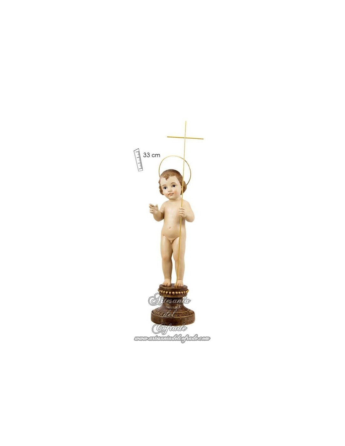 Niño Jesús con cruz de 33 ctm en realizado en resina decorada.