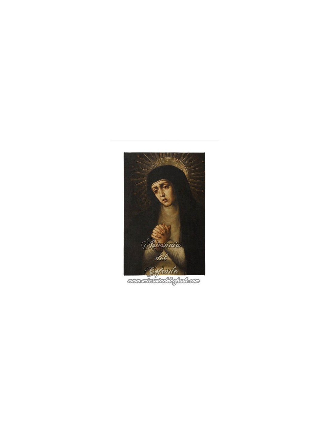 Bonita reprodución fotografíca de la Virgen Dolorosa estampada sobre tela de gran calidad y colocada sobre bastidor de madera 20x30.