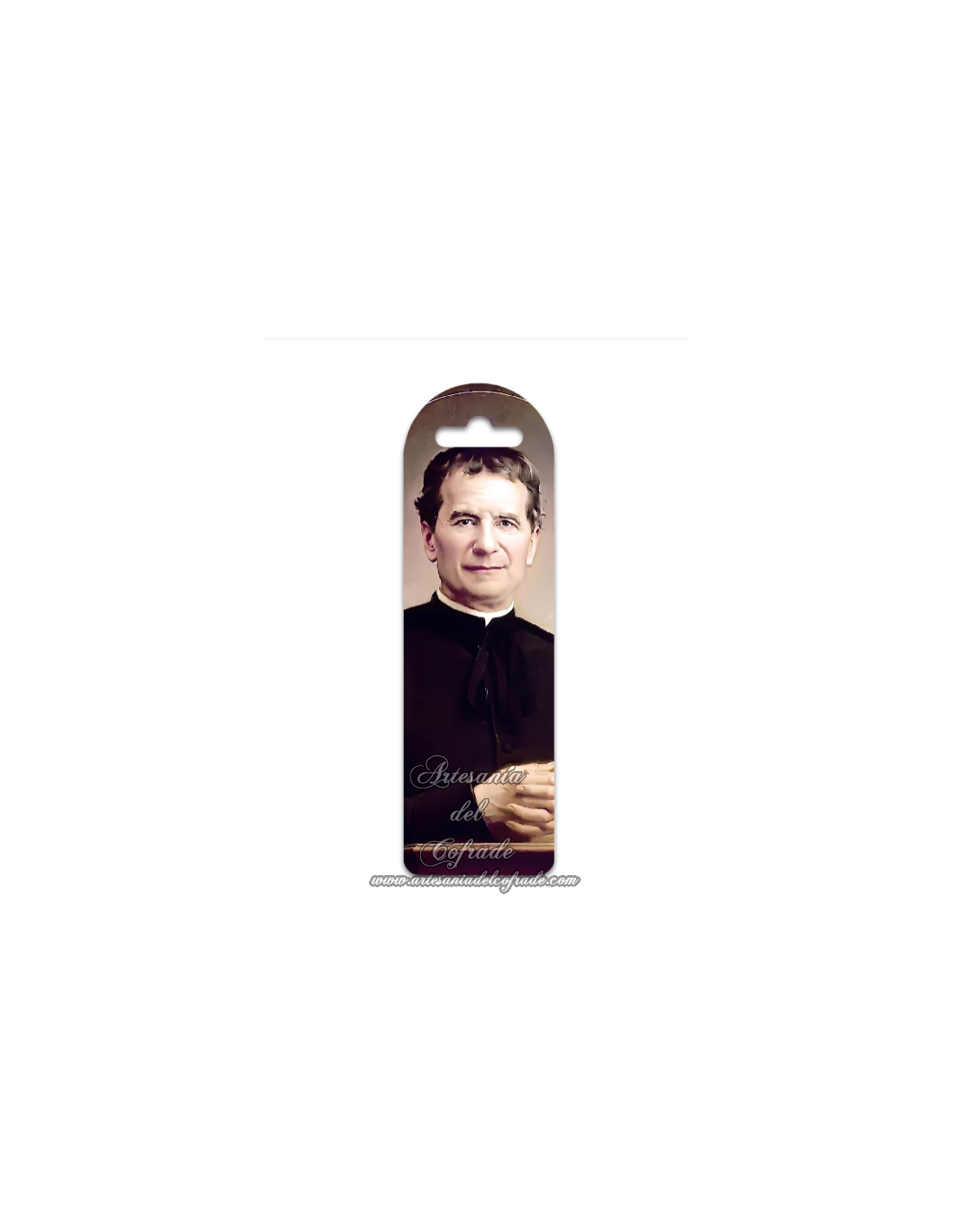 Marca página de plástico blanco flexible y resistente con fotografía de San Juan Bosco. Medida= 6x19 cm