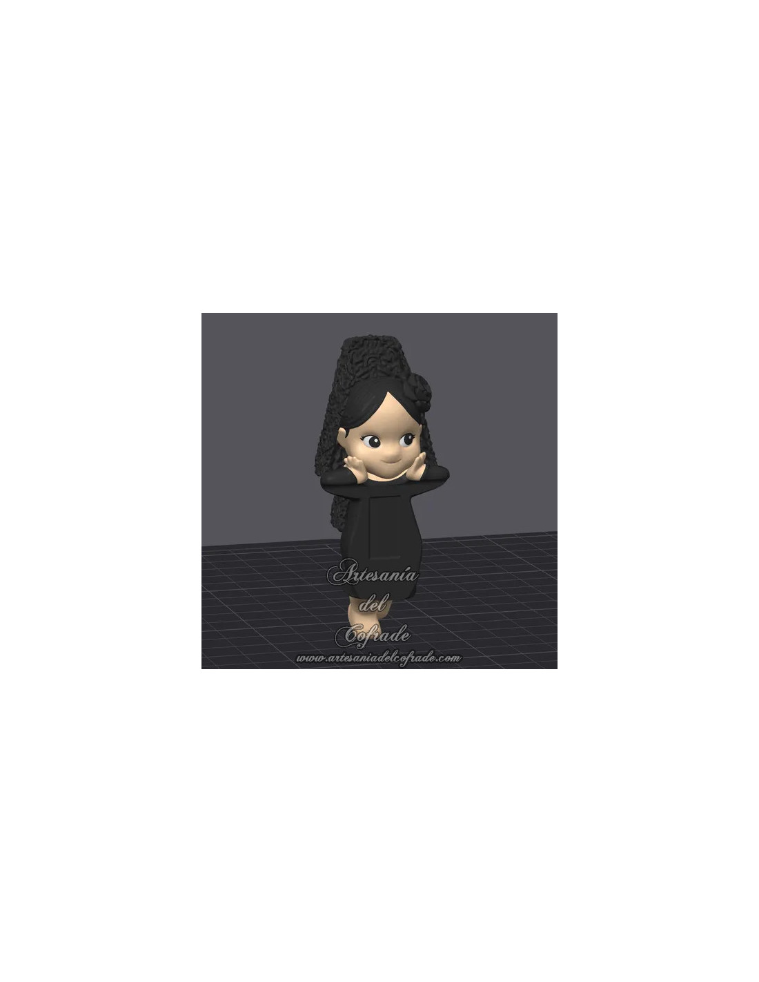 Esta pieza ha sido fabricada con materiales de alta calidad y detallado con acabados artesanales . Cada figura refleja la devoción y la espiritualidad de la Semana Santa, mostrando con precisión la delicadeza y la solemnidad del atuendo tradicional de la mantilla. Está disponible en colores clásicos , representando la diversidad de las hermandades y la riqueza cultural de las procesiones de ciudades como Sevilla, Málaga o Córdoba.