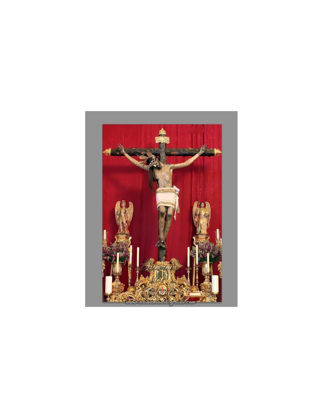Trabajamos sublimación de alta definición sobre cerámica para respetar todos los matices: el alargado cuerpo del Cristo, la policromía original, la expresión serena del rostro y el juego de luces del camarín y del paso. El resultado es una imagen muy nítida, con colores estables en el tiempo y un acabado elegante, perfecta para salones, despachos, oratorios domésticos o tu rincón cofrade.