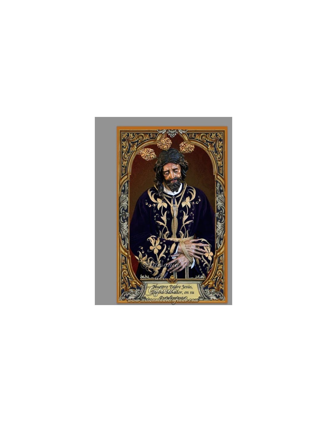 Transforma tus recuerdos y devociones en una obra de arte duradera. Esta pieza reproduce la imagen de Nuestro Padre Jesús, Divino Salvador, en su Prendimiento. Es una obra de la imaginería moderna sevillana, tallada por Antonio Joaquín Dubé de Luque en 1990, que preside el Misterio de la Hermandad Salesiana de Córdoba.