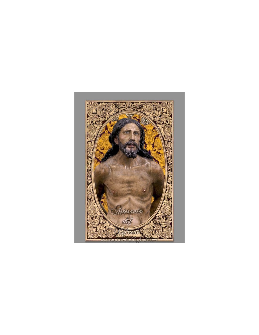Trabajamos sublimación de alta definición para capturar matices (anatomía, azotes, columna, potencias, carnaciones y policromía barroca). Resultado: imagen nítida, colores estables y acabado brillante o mate según elección. En este formato rectangular se aprecia mejor la composición completa del misterio del Señor Amarrado a la Columna, tal y como procesiona por las calles de Lucena en Semana Santa.
