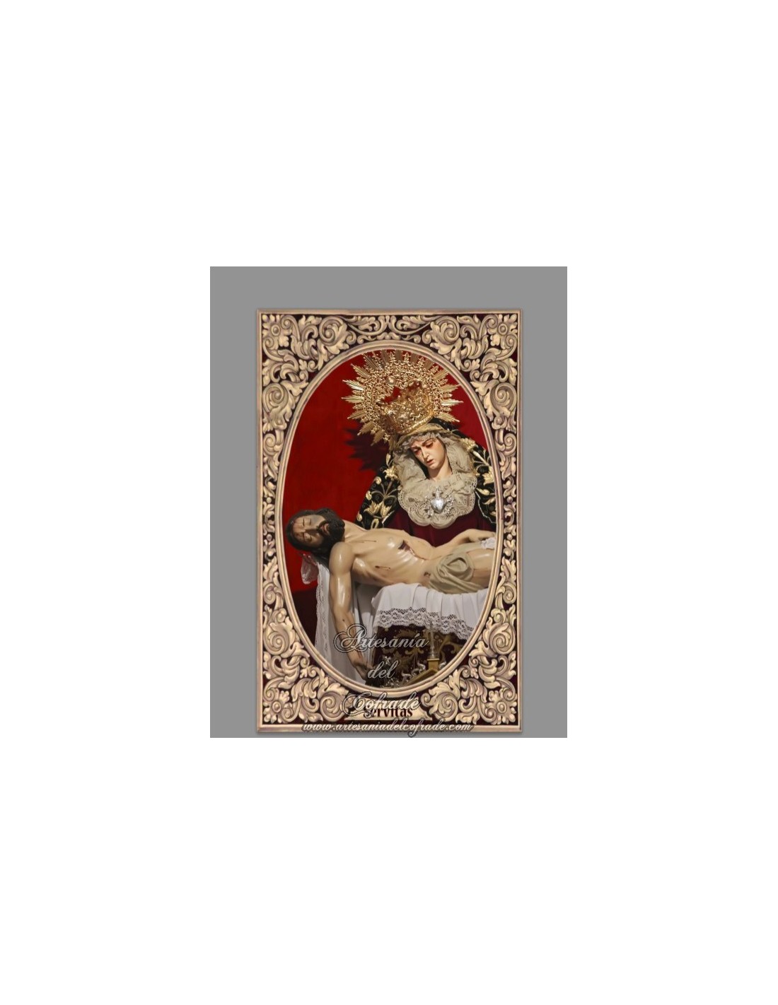 En el silencio expectante del Sábado Santo, hay una escena que detiene el tiempo y sobrecoge el alma: el abrazo roto de una Madre a su Hijo muerto. Es el misterio de la Sagrada Mortaja de la Hermandad de los Servitas, la Piedad que resume todo el dolor del mundo. En Artesanía del Cofrade, te ofrecemos este azulejo que es una ventana a la escena más conmovedora y solemne de la Semana Santa de Sevilla.