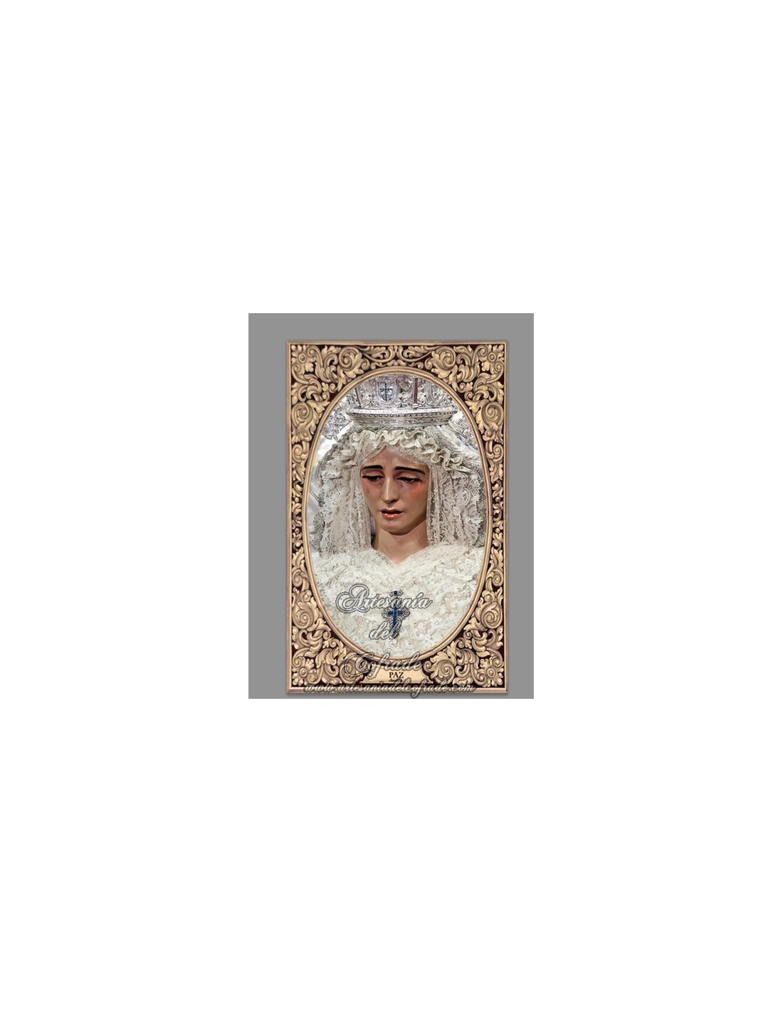 Este azulejo reproduce una de las obras más exquisitas del célebre escultor Antonio Illanes Rodríguez (1939). La Virgen de la Paz es un prodigio de belleza clásica y dulzura. Su rostro, de una serenidad que cautiva, y sus manos entrelazadas en un gesto de oración suave, la convierten en un icono de la paz interior y en una de las Dolorosas más admiradas y queridas por todos los sevillanos.