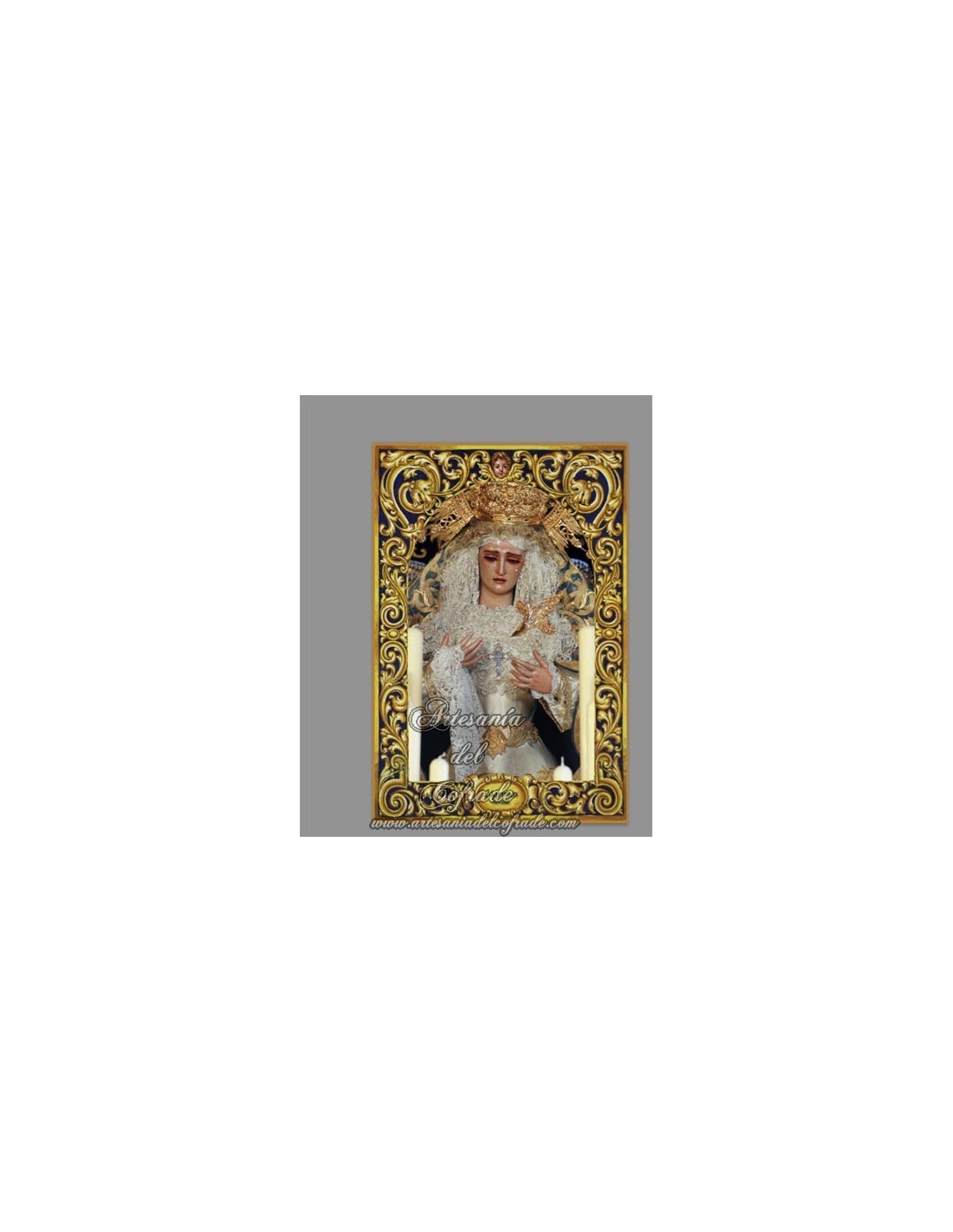 Azulejo rectangular con Nuestra Señora de las Lágrimas de Sevilla (Cofradía de la Exaltación)
