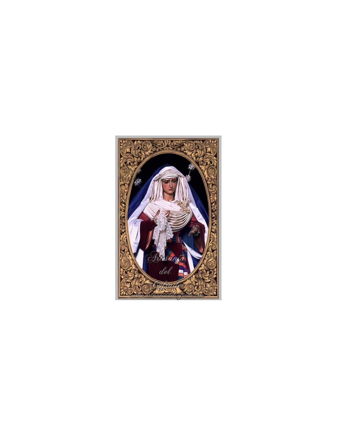 - Acabado: La imagen de la Virgen de la Hiniesta Dolorosa está grabada con una meticulosa técnica artesanal, lo que garantiza un resultado fiel y detallado.