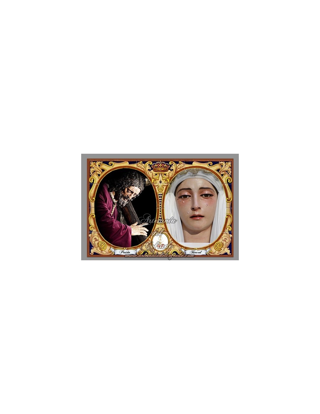 Hay piezas que no solo contienen fe, sino que son un capítulo de la Historia del Arte. Este azulejo une a los dos titulares de la Archicofradía de Pasión, Nuestro Padre Jesús de la Pasión y Nuestra Madre y Señora de la Merced, dos obras maestras del Siglo de Oro que definen la solemnidad del Jueves Santo. En Artesanía del Cofrade, te ofrecemos la oportunidad de tener en tu hogar un retablo cerámico con dos de las joyas más grandes del patrimonio sevillano.